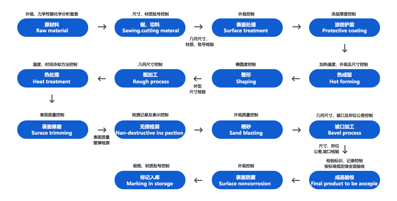 無縫碳鋼、合金管件工藝流程圖(熱成型)